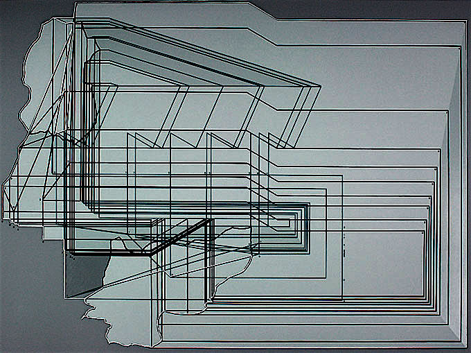 siebdruck 1996 [ auswahl ] Dokumentation In den grafischen Arbeiten werden Formtransformationen untersucht. Es ist das Prinzip der Tafelprojektion angewendet und in diesen vorgegebenen Arbeitsablauf werden Variablen eingefügt. Diese sind Quelle immer wieder überraschender Mutationen der Ausgangsform. Ein filigranes Netz aus Hilfslinien dokumentiert den Prozess und bildet den linearen Gegenpol zur Fläche der Objekte. André Alder Die auf den Abbildungen kaum sichtbare Gegenüberstellung der matten Oberflächen zu der glänzenden, verstärkt die Abgrenzung der Flächen bei seitlichem Betrachten der Arbeiten.